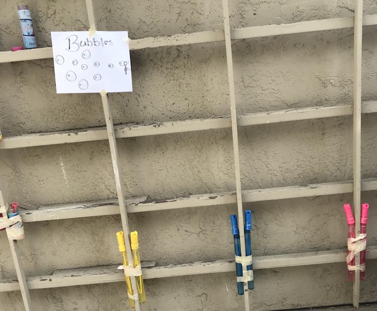 Like before, before Zoey’s party, I swept over the deck cleaning up the excess toys so the kids wouldn’t be overwhelmed I set aside any toys I thought the kids at the party may enjoy if the main science sensory stations didn’t keep their attention. Since I made signs for the main two stations Ada and I figured we had to continue the signs throughout all the stations on the deck.