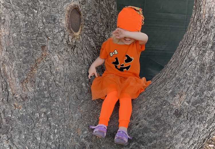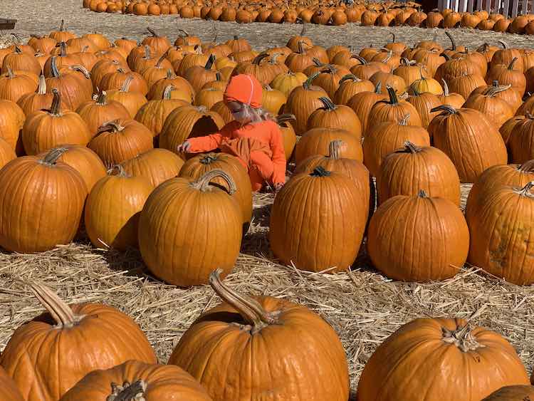 After last years Jack-o-lantern Zoey wanted a pumpkin with "no face" costume. Can you spot her in the pumpkin patch?