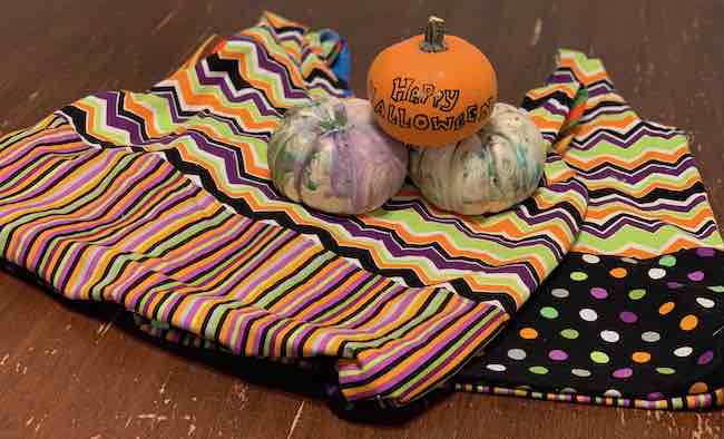 And for fun, last minute, I used the leftover fabric's center cardboard to draw a quick Happy Halloween sign to leave out with the candy. It looked a bit like a tombstone... perfectly on-theme!