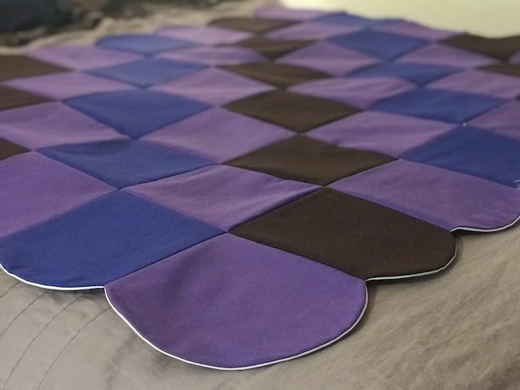- My circles weren’t perfect circles so the joins on the edge of the quilt dip inward and the intersections where the squares join sometimes have visible holes.