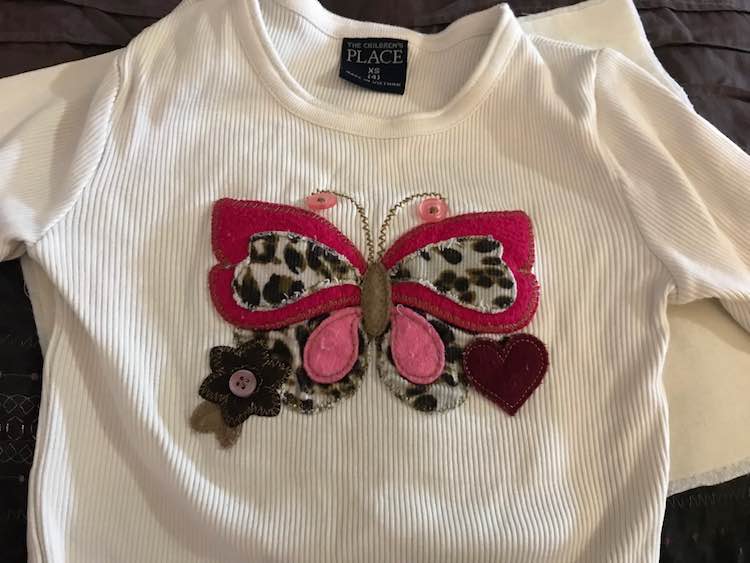 - Old shirt with an embroidered butterfly on it to make a hidden surprise