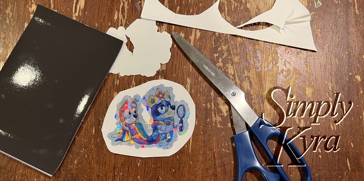 While writing this post I received another Bluey themed pre-order from Sweet Tickles Prints that came with a sticker rather than a magnet this time. The sticker included a small, planned, hole in the center so I knew turning it into a magnet would be a bit more complicated as it would be trifficult (link to correlating Bluey episode on YouTube) to cut out.