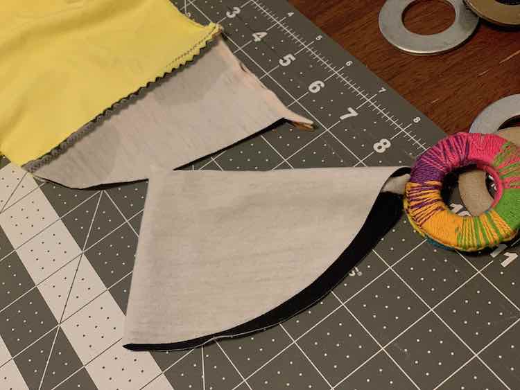 - Yellow fabric – a thin and soft knit that came from a mystery box (not sure but best guess is it was either from Elevated Fashion Fabrics or Sly Fox Fabrics)